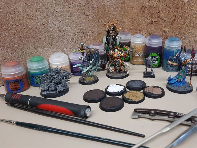 Aktuell nutzen wir bei der Bemalung hauptsächlich Figuren von Games Workshop. Techniken und Fertigkeiten, die hier erlernt werden, lassen sich aber auf alle anderen möglichen Modelle übertragen. Das Bemalen/Verschönern von privaten Figuren ist möglich.